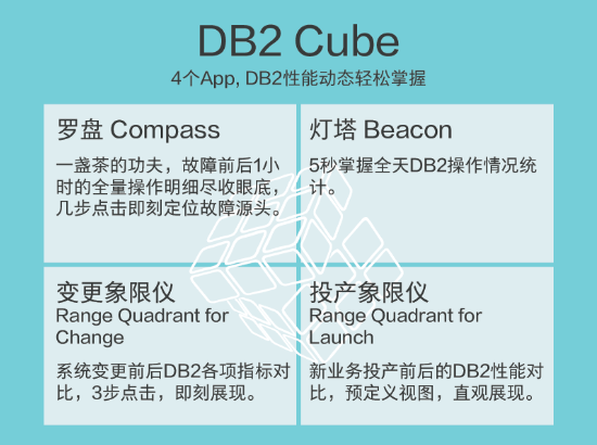 天旦DB2魔方,一个专家级的DB2性能管理工具,基于旁路方式,对系统0影响。DB2魔方由4个App构成,每一个App都对应DB2性能管理的一个重要挑战给出解决方案。