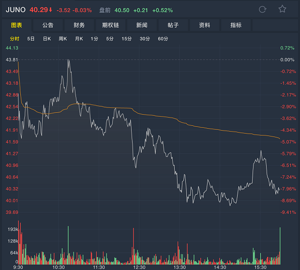 我个人觉得JUNO这两天的涨幅略不靠谱,补完缺口之后接下来可能还是得回调一点,所以即使看好它,现在追高也不是个好主意。