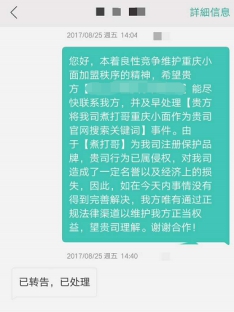 但有讲道理的也有沟通困难,态度不端正的同行。另一家冒用“煮打哥”品牌做竞价广告的同行起初表现出不合作态度,非常抗拒。直到我司表示将考虑通过法律手段解决。在法律的威慑下,该公司也最终撤掉了对“煮打哥”品牌侵权的竞价广告。