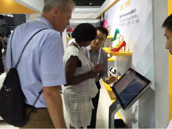 外国嘉宾体验鞋魔方脚型3D扫描仪智能定制魅力