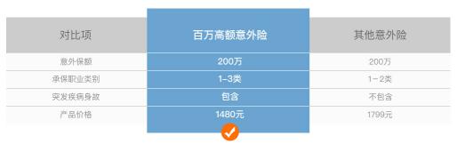 鉴于市面上的意外险一般不包含猝死责任,并且大多数保额在100万元左右,较难满足不同用户的多样化需求,大特保适时推出了一款最高保额达300万的意外险,专为白领过劳人群、高风险人群设计,不但成功拓展了意外险风险覆盖范围,并且很大程度提高了保额上限。