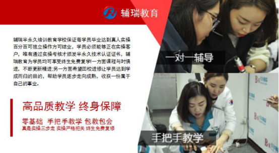 在教学方式上,辅瑞教育学院一直以来都坚持一对一小班手把手精品教学模式,杜绝大锅饭,确保老师能对每一位学员进行手把手的指导,辅瑞教育独有1+3系统快训术,签约保证学员毕业后即能独立实操,五天可以让学员完成从零基础到半永久专家的完美蜕变,毕业之后即能马上回家创造收益。同时学校还提供终身免费复训,无任何隐形收费。