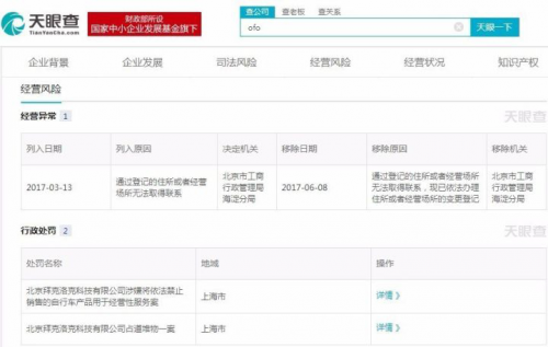 (天眼查数据:公司的经营风险和行政处罚信息)