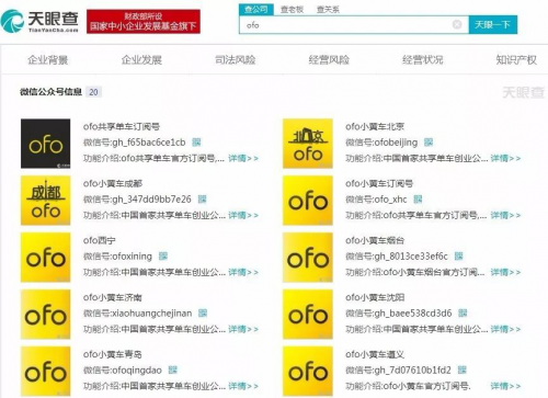 天眼查可直接显示公司所有注册在案的微信公众号,一键查询,无需跳转页面,查看方便快捷,助力商务人员高效的展开业务拓展。