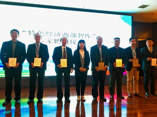 “特色经济西部智库”成立仪式上为聘任专家颁发聘书