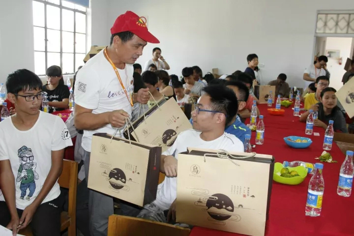 活动最后,小九金服董事长陈旭义先生还带着190份定制月饼送给了在场的爱心人士和学生,表达对大家的节日祝福,希望所有人都能够人月两团圆。