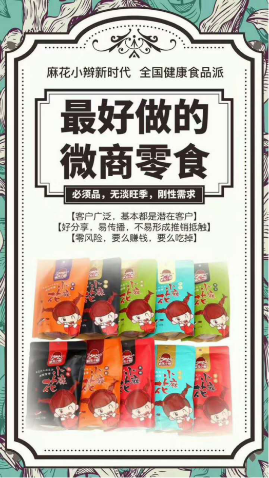 麻花小辫是重庆的特色小零食,在全国都有很高的知名度,口感酥脆,香醇美味,人们在休闲娱乐时刻都喜欢吃几袋麻花小辫来消遣时光,麻花小辫的客源甚至可以遍及全国各地,只要品尝过一次麻花小辫,就会被其美味所俘获。麻花小辫是快消食品,需求量大,返购率高,而且价格亲民,非常适合在朋友圈中销售,要知道,几乎每一个麻花小辫的代理都能够赚到钱。