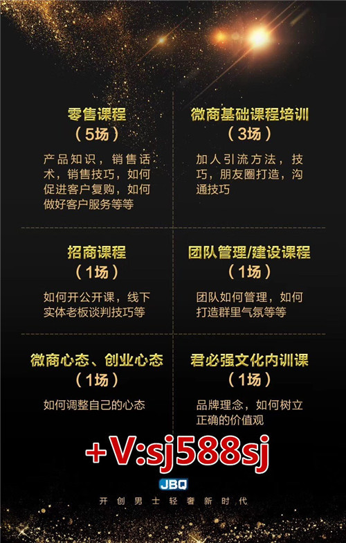 君必强高档的课程会让你学习到尖叫,打破传统的微商培训模式,各大多年微商大咖CEO轮番分享干货,彻底颠覆你的营销思维!