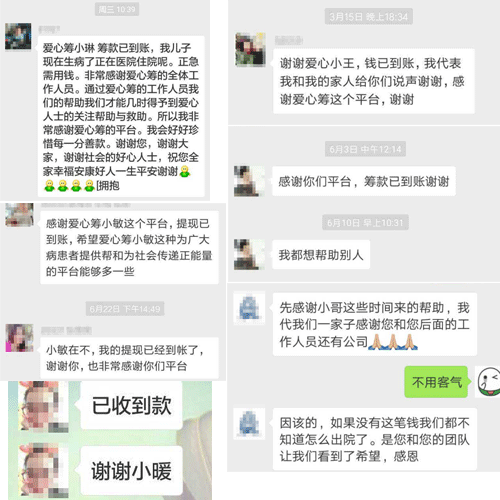 (救命钱到账后,病友感谢爱心筹筹款顾问)