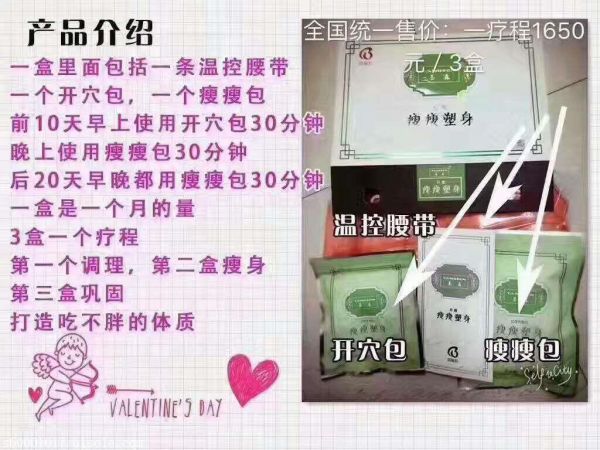 我们说现在中国市场多数的减肥产品的的原理都是腹泻排脂与控制食欲,这种腹泻排脂的瘦身办法,只能说是减轻了人体的水分含量,而不是做到真正的消除了脂肪。肥胖的概念就是人体内的脂肪堆积超多,每人个一天摄入能量大于人机体的所需要的能量,多余的这部分脂肪和能量就被储存起来,加上身体代谢功能慢。代谢不掉多余的脂肪,引了我们所说的肥胖。那么我们说,十个胖子九个虚。胖就是代谢慢,和体质有关,过于虚,寒,湿的体质身体是冰冷的,肚皮也是凉的,中医里说虚则寒-寒则湿-湿则凝-凝则淤-淤则堵,堵了代谢就慢,即使不吃饭也不瘦,养森瘦瘦包减肥就是打通人体经络和穴位,去除体内湿寒,湿寒没了,代谢自然加快,就开始瘦啦,让你在减肥中养生,养生中减肥。所以我们说,要想根除肥胖就要从改善易胖体质开始,那么目前也只有养森瘦瘦包可以做到了。(养森产品订购代理热线总代时婕微信:13810197488)