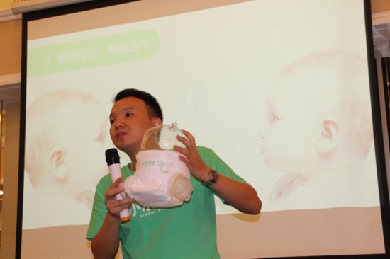 在现场不仅是向宝妈们传授如何为宝宝挑选合适纸尿裤经验,也为广大宝妈对于纸尿裤上了一节全面、科学的纸尿裤知识讲解,和现场观众引起了热情互动。