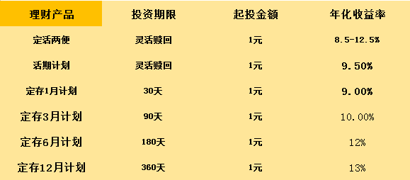 旺财猫产品:日日盈、周周盈、月月盈概况表
