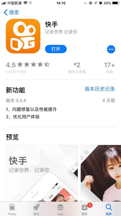 AppStore快手App评分