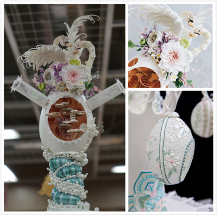 顾碧清:这次的作品在翻糖工艺上有所突破。主要是:吊线细度提升了3个等级。我的作品线条整体细度都在00000以上,细度内似与发丝。(在翻糖工艺的技术领域里,吊线细度是很难有突破的,但这次的作品吊线一次就提升了3级,正常的吊线细度是在00,细度内似毛线。)
