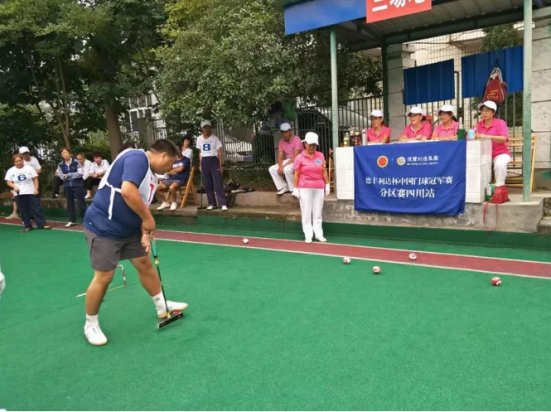 门球运动深受中老年朋友喜爱,此项运动操作灵活、技术性强、健身性强,需要团队配合密切协调,能体现赛场上的团队精神和集体荣誉感。“德丰利达杯”2017年中国门球冠军赛四川分区赛赛场上,训练有素的各代表队队员以精湛的球技、高尚的风格,挥杆角逐于球场。