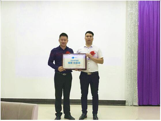 (图:云洗商务总监(右)为云洗养护连锁兴安店负责人(左)授牌)