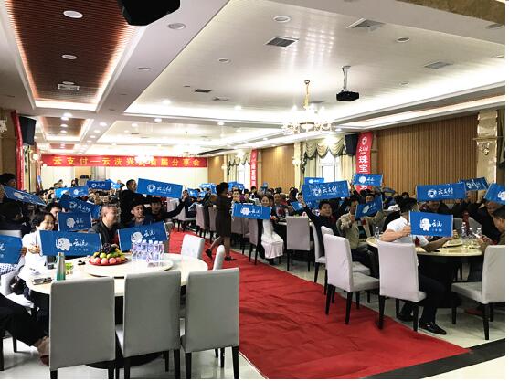 在开业典礼上,云付通云洗商务总监为所有来宾介绍了云洗的特色服务项目,得到了现场来宾的热烈欢迎。在当天下午,还召开了云支付分享交流会。