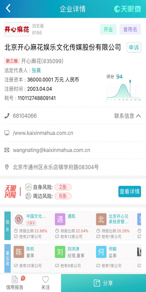 (天眼查数据:开心麻花企业信息)