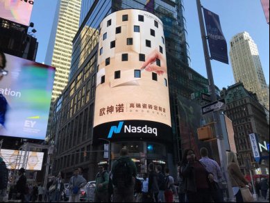 2017年10月,欧神诺陶瓷再次跃上美国纽约时代广场,荣登“美国纽约纳斯达克大屏幕”,向全世界展示着中国高端瓷砖定制品牌的独特魅力。与世界对话,成为全球焦点,再次让世界瞩目。时隔半个月再度亮相纽约时代广场,不仅反映了欧神诺陶瓷的品牌价值,更彰显出欧神诺陶瓷与国际接轨的决心。