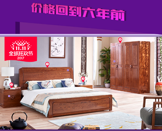 套装购买省更多!价值人民币22790元的现代中式卧房实木四件套,预售到手价仅要15010元!多出的钱够再买一套实木沙发组合套装。