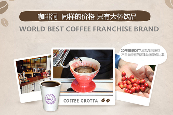 COFFEE GROTTA 咖啡洞不仅对咖啡加盟合作伙伴亲民,对消费更加亲民!咖啡洞是国际上首家推“BIG SIZE”大杯理念的咖啡品牌,在COFFEE GROTTA没有大、中、小杯之分。同样的价格,咖啡洞只提供“BIG SIZE”大杯咖啡及饮品,满满的享受和幸福,咖啡洞给你最满的陪伴!最重要一点,咖啡洞的咖啡是为国人专属定制烘焙!其主要原料咖啡豆均来自巴西、哥伦比亚、埃塞俄比亚,采集最新鲜的咖啡豆为国人定制烘焙,精心萃取制成的高品质咖啡,味道更加适合国人口味!
