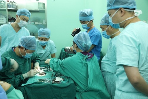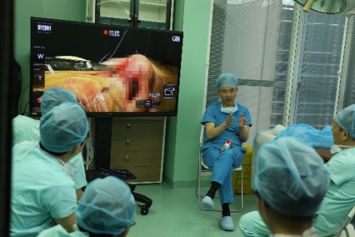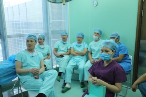 (学员现场观看手术操作)