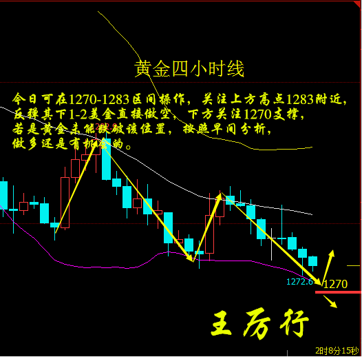 周二日线收小阴,凌晨受强劲的买盘支撑反弹至1280上方,虽然随后回撤,涨势虽弱,但是明显拉低了下行动能,凌晨反弹亦是突破了昨日开盘价,价格站上昨日早盘高点,短线完成强弱转换。而且晚间回落幅度也不是很大,没有收盘于低点下方。这种震荡行情,谈不上延续性,顶多是支撑和阻力区间运行而已。具体操作上笔者建议大家关注昨日凌晨反抽的高点1281一线,做空将依托此位置为防守位,震荡的行情当中一个是不能直接追空,二是等待价格反弹的时间点去操作。今日可在1270-1283区间操作,关注上方高点1283附近,反弹其下1-2美金直接做空,下方关注1270支撑,若是黄金未能跌破该位置,按照早间分析,做多还是有机会的。