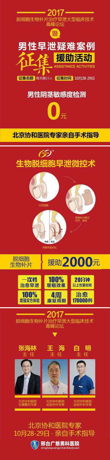 北京、上海、广州等地已正式开始接诊操作手术,患者反映情况一致好评,目前属于我国男科学2017年革命性的大突破,现针对河北省定点发布,落座于河北省邢台广慈男科医院,会议当天众多学者,专家教授积极讨论,论坛效果显著!