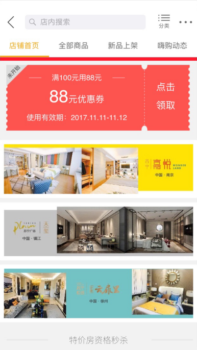 苏宁,作为世界500强企业,拥有一份追求创新的勇敢精神。此次11.11,苏宁置业延续了苏宁控股集团“不止所见嗨购11天”的O2O购物节主题,融合共享旗下商业、地产、金融、文创、体育、投资等六大产业资源,构建起全产业融合的大数据生态系统,敲开了智慧生活的大门。玩起了地产界的“O2O购房节”。通过直播看房、通过VR科技看样板间、通过易购平台抢购特价房……,把互联网O2O精神发挥到极致,嗨购11天!