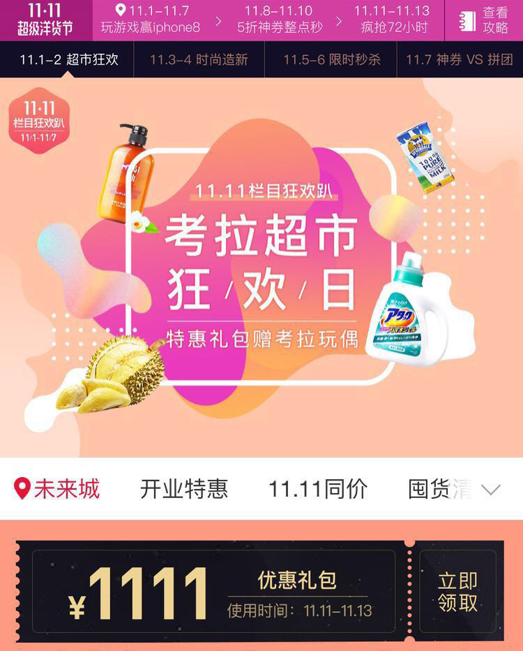 11月1日-11月10日,网易考拉以十足诚意让消费者的每天都充满惊喜。从“未来城”“开业庆典”等新玩法到“全球顶级商超”等全球好货,网易考拉以“史上最洋气双十一”的姿态面向用户,让用户尽享全球好货的同时,专享独家优惠。
