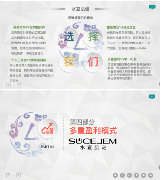 一个带有深刻经验的化妆品品牌,一个可以让姑娘绽放的更加灿烂的美妆品牌,一个让加盟商欣喜若狂的品牌,一个让同行听到水宜肌谜四个字都闻风丧胆的一线时尚品牌,依旧不会因为自己的成就而膨胀,依旧保持初心,保持“高品质、高效果、大品牌、低价格”的初心,为消费者、为加盟商提供优质化的产品和服务!