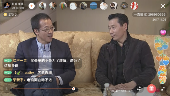 两位创业教父还畅聊了关于消费、关于房子等多个话题。因为周华非常着迷于汽车,很早就买了一辆宾利。俞敏洪调侃道老同学说:记得有一次在宿舍,我说我最大的愿望是拥有一辆崭新的永久牌自行车,结果周华说,他的愿望是未来拥有一辆保时捷汽车,我记得我当时觉得这是一个几辈子都不能实现的梦想。可见目标的重要性。现在的周华,不仅仅拥有了汽车,更加拥有了一份比汽车更值钱的事业。