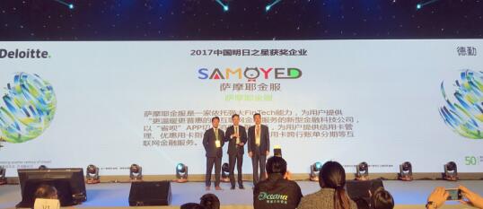 11月9日,2017德勤高科技高成长中国50强(“中国50强”)颁奖典礼在广州举行,活动同时揭晓了德勤—华兴中国明日之星(“中国明日之星”)。经过四个多月的评审,萨摩耶金服在这一全球范围内久负盛名的高成长企业评选项目中取得优异成绩,获评“2017德勤-华兴中国明日之星”,也是获奖单位中成立时间最短的互联网金融科技企业。 共同入选的还有ofo小黄车、摩拜单车、猫眼电影、丰巢等知名企业。