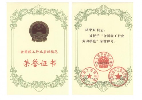 2007年12月,三盛集团董事长林荣东被评为“全国轻工行业劳动模范”