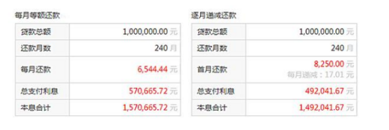 举个例子:小张买房,向银行贷款100万,商业贷款年利率4.9%,20年还清,那么总共要给银行多少利息呢?等额本金和等额本息月供计算如下: