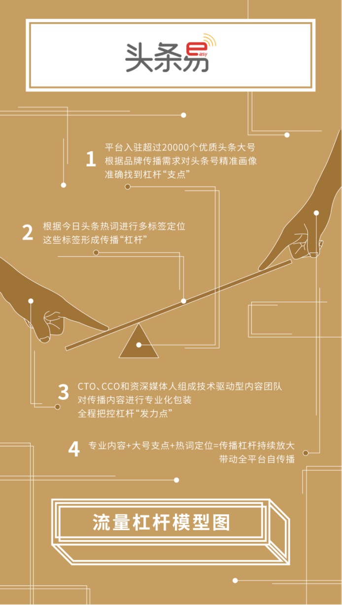 值得一提的是,头条易还结合平台技术优势和丰富的广告投放经验打造出了“流量杠杆模型”。