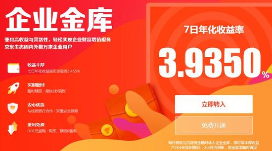 11.11和12.12之间,上一笔资金收回和新的进货周期开始之前,中间总有那么几天的资金闲置时间.这几天难道就让钱白白放着?此处有一个小TIPS:把闲置资金转到京东企业金融企业理财板块下的企业金库。1分钱起购,即时赎回,既不会让钱闲置,也能在急需用钱的时候无缝对接?。