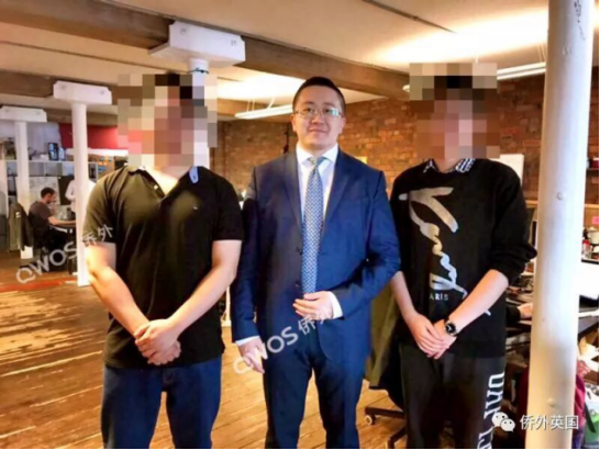 上图为英国项目部总监谭言先生和该企业侨外投资人的合照