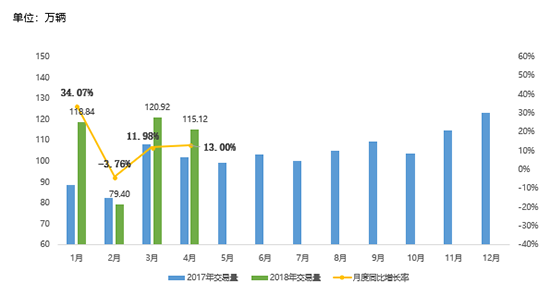 在3月重回高位以后,二手车4月销量有所回落。数据显示,4月,全国二手车市场交易量为115.12万辆,环比下降4.79%,同比增长13%,低于去年全年20%以上的增速。流通协会副秘书长罗磊表示,关税下调使得消费者观望情绪比较浓,尤其反映在二手车市场。