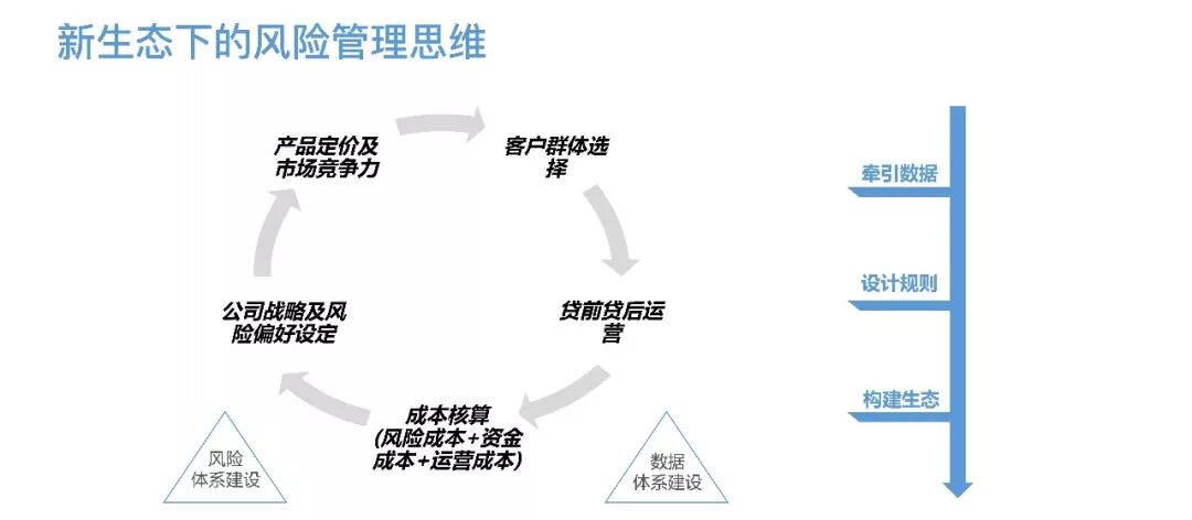 我们风险成本、资金成本、运营成本是什么样子的?跟我们当时制定的计划是不是一致?我们去重新review一下之前的战略和风险偏好是不是一致的?如果有偏差的话,是不是要做一个调整?所以在这样的思路下有两方面特别重要,一方面是我们风险体系的建设,我们一定要有战略层面的讨论,以及基于这个战略的规则和产品设计要有非常明确的一个方向;那另一方面我们要有一个非常好的数据体系建设,我们贷前、贷后运营的数据是不是能够非常规准的、能够被人理解的沉淀在我们的数据库里面,我们有没有定期去观察这些数据,然后去核算我们的成本是不是跟之前的预期是一致的。可能对于新公司来说是面临挑战的,但有了这样一个循环,最多一年他对市场的理解、对客群的理解、对业务的理解就会不一样。