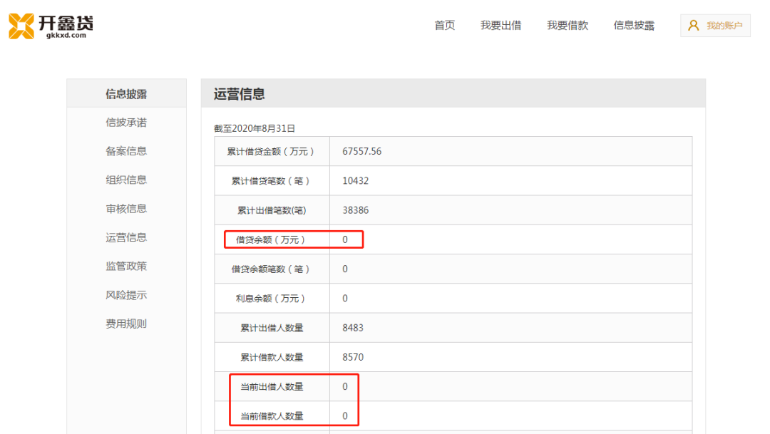 官网数据显示,截至2020年8月31日,开鑫贷借贷余额为零,已经实现网贷存量的清退。